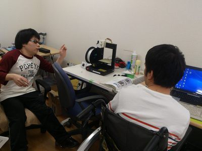 サンサン就労室では、見学・就労体験の方に、久しぶりの3Dプリンター説明員の仕事でした。