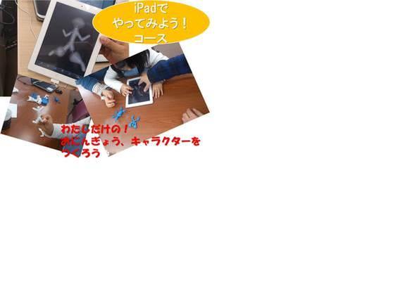 ★「iPadコース」:アプリでキャラクター見本を自在に変化させて、自分だけの「お人形」がつくれます。当日、お持ち帰り!