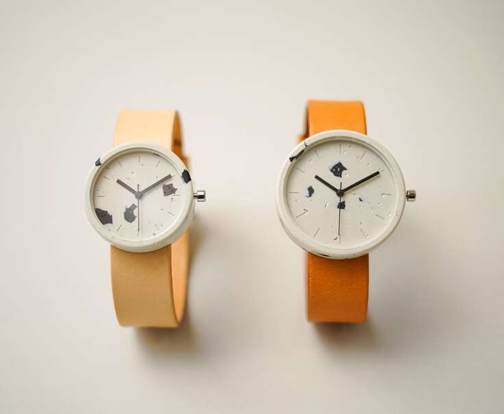 ※腕時計のベルトでアイボリー色をお選びの場合、下の写真のように経年変化(左から右の色に、次第に飴色に変わります)がございます。必ずご了承の上、ご選択ください。