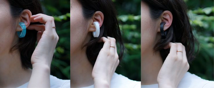 今回の再生プラスチックパネルを使ったアクセサリーは、イヤーカフ、リング、