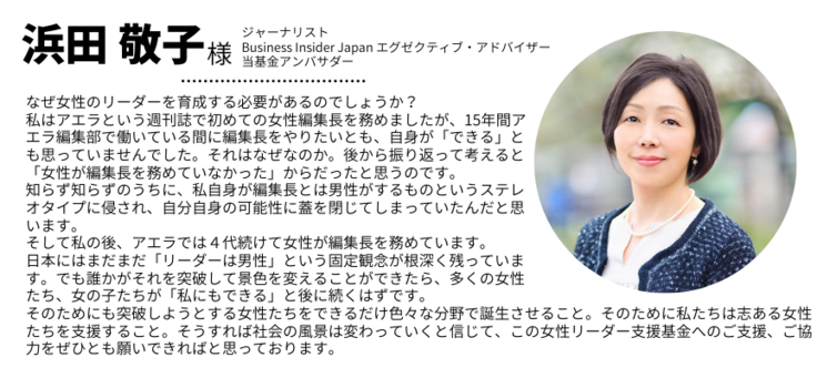 「女性政治家」「女性起業家」などの女性リーダーを増やしたい!日本における女性の地位向上のためのサポートをする「女性リーダー支援基金」を応援してください。