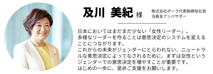 当基金アンバサダーでもあるポーラの及川美紀さんより応援メッセージを頂きましたのでご紹介いたします!