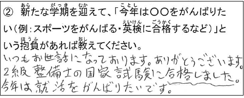 春になり、新しい学年となった学生たちからは嬉しい報告も寄せられています。