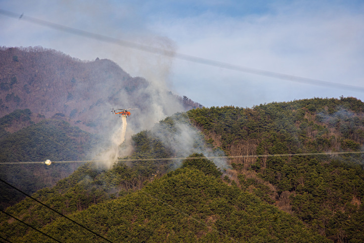 前日まで物資支援や健康相談等の支援を行なってきた慶尚北道のヨンドク郡では、消防による消火活動とまとまった降雨により山火事は鎮圧されました。しかし、複数の山林で同時多発的に発生していた山火事は、場所によっては今も炎をあげて山を焦がし、完全鎮火に向けて現在も消火活動は続けられています。現地の模様を、ピースウィンズの近藤史門カメラマンがレポートします。
