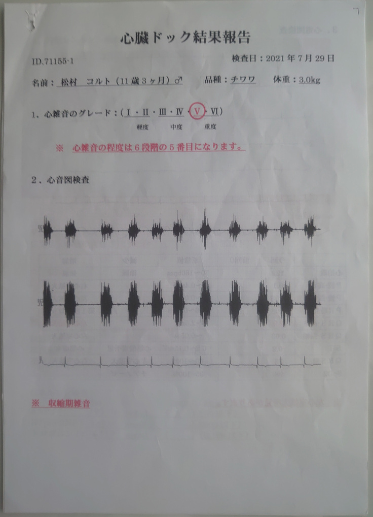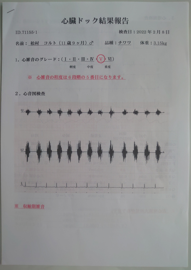 ※心雑音のグレードは6段階中5段階目まで悪化していました。