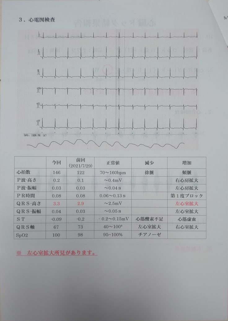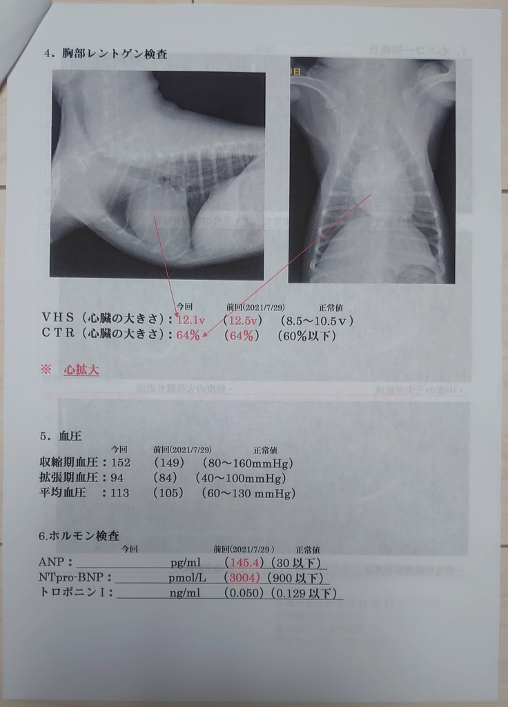 2021年1月の定期チェックでは心臓サイズの縮小がみられ継続治療となったのですが、同年7月の定期検査で僧帽弁の肥厚がひどくなっていると指摘を受け、心臓病に詳しい動物病院を紹介していただきすぐに再検査してもらう運びとなりました。