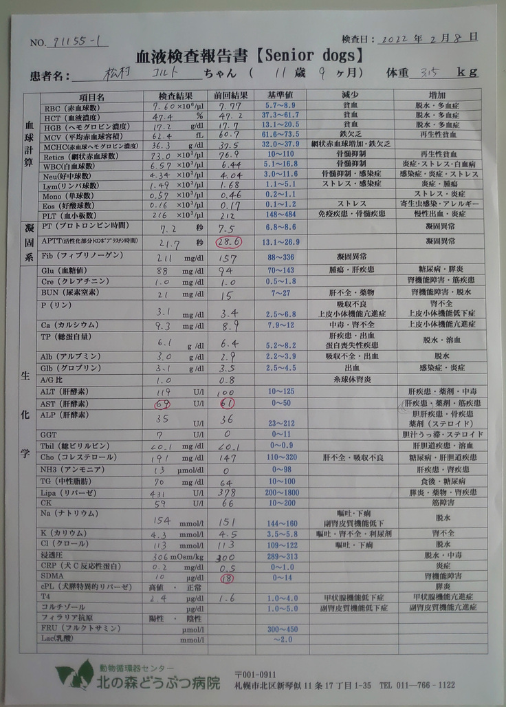 かかりつけ医の獣医師にもこの検査結果を見てもらい、手術をすべきか相談しました。