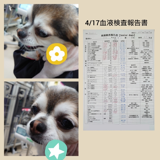 術後もまだまだ油断できない状況が続きます。血液検査の結果では、貧血や肝臓などの数値が悪いのですが術後としては許容範囲とのことで問題はなさそうと言われました。コルトの生命力を信じて無事に退院できるよう祈ります!