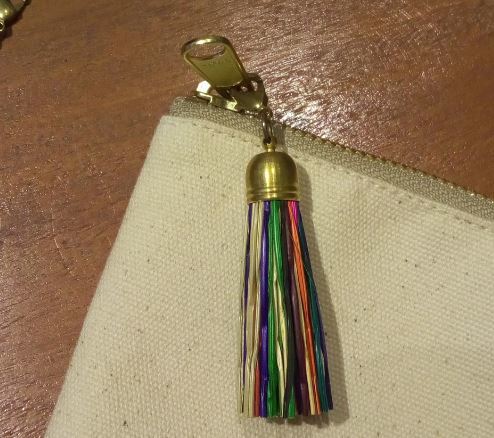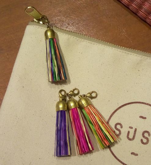 このポーチにラッシュチャームというい草のアクセサリーを取り付けて完成です。