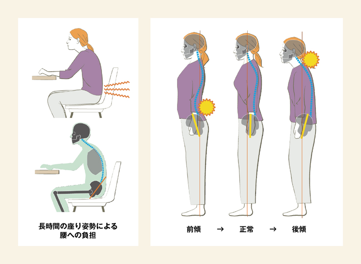 姿勢崩れの多くは長時間同じ姿勢でいることで、強制的な骨盤の後傾(後ろに傾くこと)によって起こります。さらに体のバランスをとるために顔の位置が前へとスライドしてしまいます。