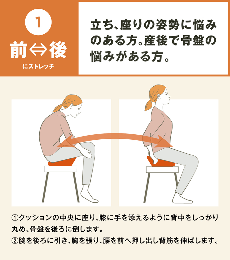 意識して運動しなくても、座ることで不安定さを感じられ、少ない動きで簡単に骨盤ストレッチが行えます。