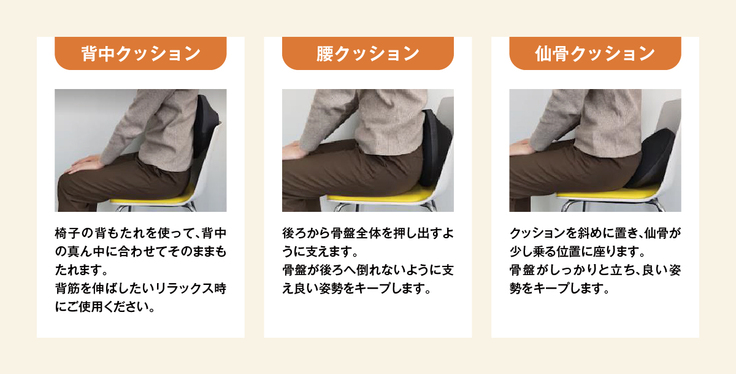 骨盤ストレッチ運動以外にも背もたれクッションとしてご使用いただけます。