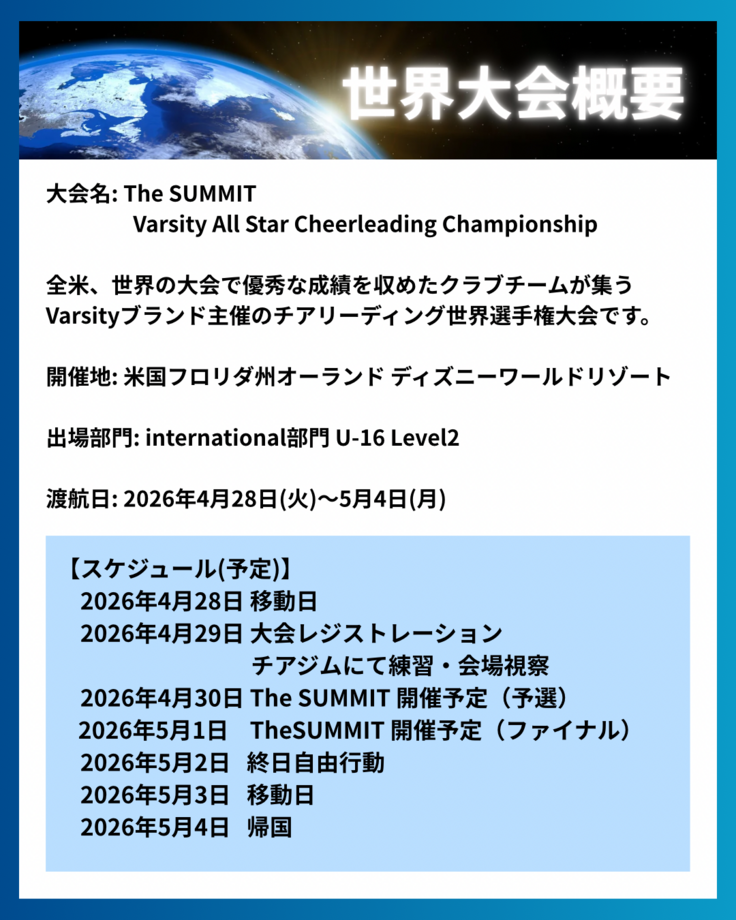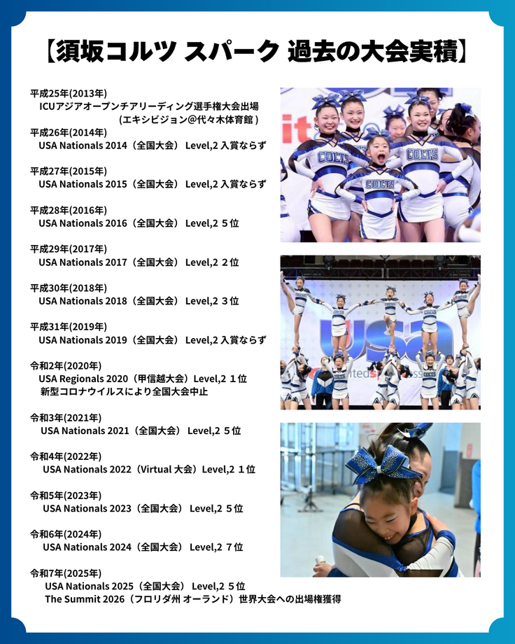 この世界大会は、須坂コルツが何度も目指してきた“夢の舞台”でもあります。チーム全員の努力と絆、そして何よりも、「チアが大好き!」という熱い情熱が、ここまでの原動力となりました。