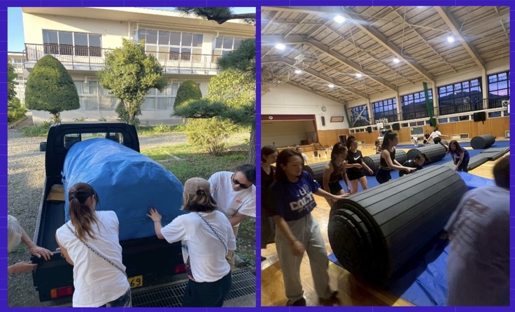「大会本番に近い環境で普段の練習に取り組んで欲しい!」という思いから、チアマットの運搬作業をしています🛻