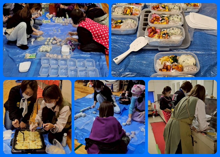 体育館で使用できる限られた調理用具やスペースでのお弁当作りは、思った以上に大変でした💦
