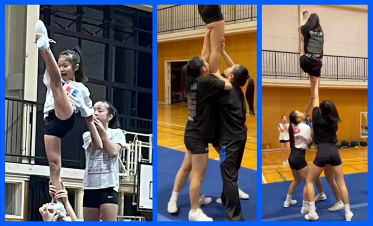 ※ スタンツとは、1名〜複数名の選手が協力してトップを持ち上げるチアの組技です。