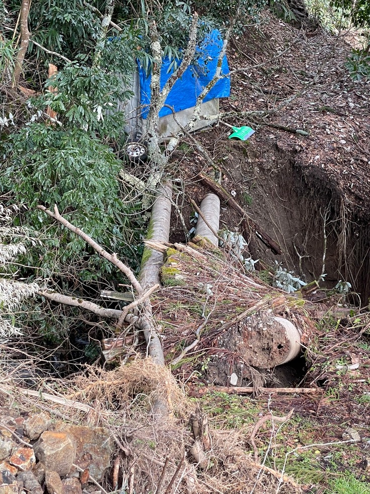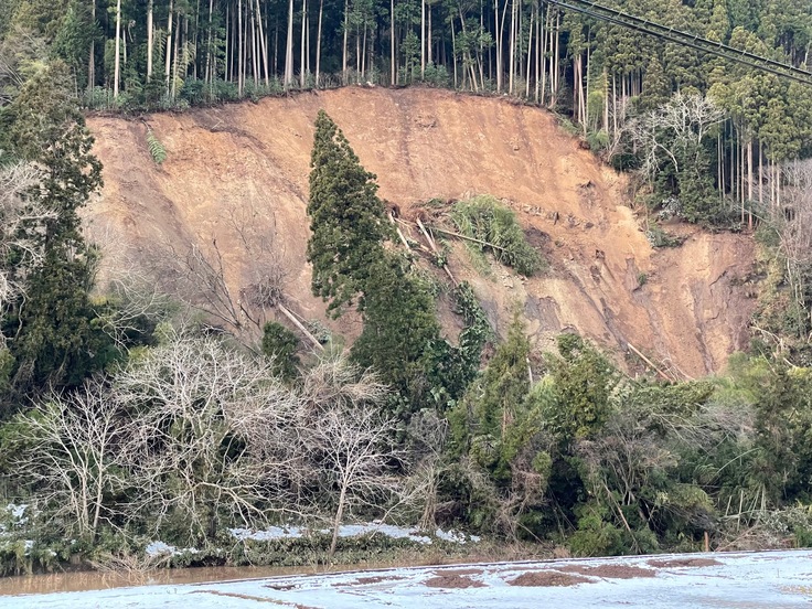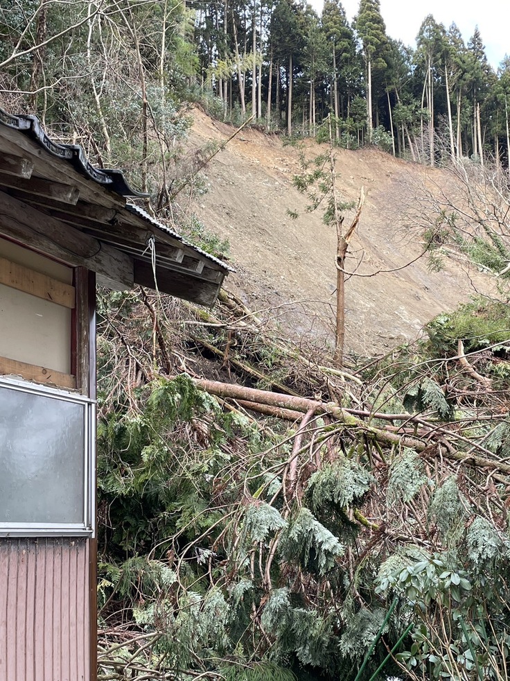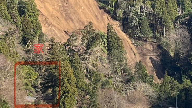 家の裏山は地滑りを起こし、家の前後の道はなくなりました。