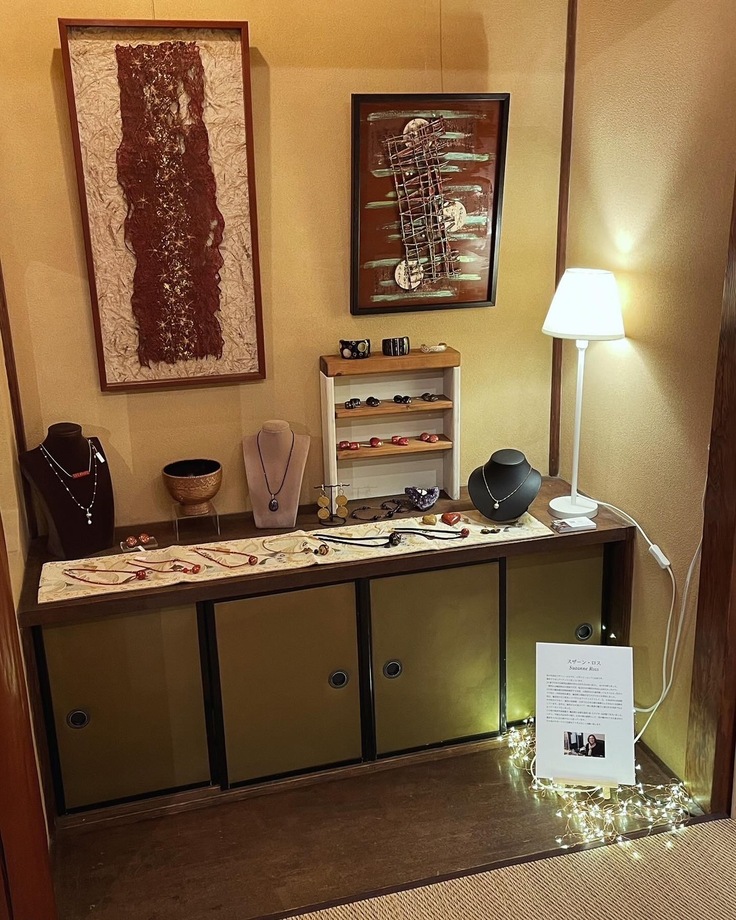 友人や長年の知り合いのお客様のおかげで、大阪での展示会は大成功に終わりました。私にとっては新しい場所《カフェと雑貨g.fortune》というカフェ兼ギャラリーの2階で展示させて頂きましました。オーナーのヒロコさんはとても協力的で寛大な人で、更に彼女のプリンやケーキは絶品でした!