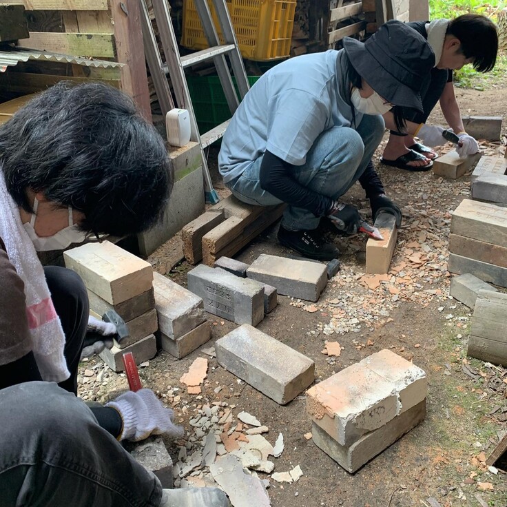 6月10日(土)~14日(水)、26日(月)の解体作業では、延べ78名の「珠洲焼応援団」団員の皆さんが作業に加わり、約3000個のレンガを綺麗にし、仕分けを行いました。