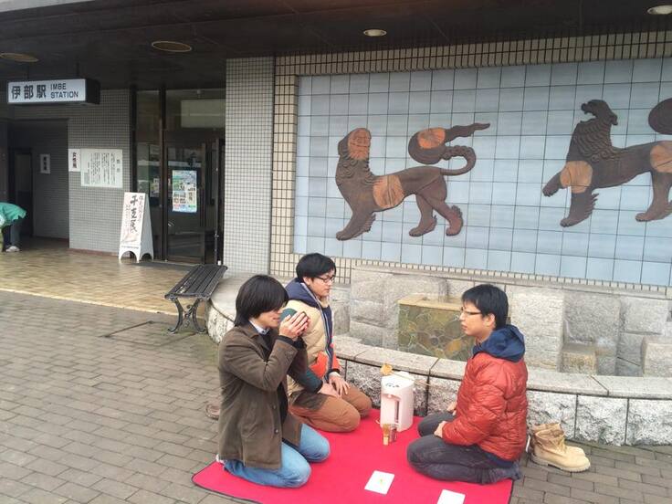 今回のクラウドファンディングの中心メンバーである備前焼作家の森大雅(写真右)、藤田祥(写真中央)、森敏彰(写真左)の3名は、現在はお休み中となっていますが、旅先のナイスなスポットでお茶を点て、さまざまな方に備前焼の魅力を感じていただこうではないかと「備前焼キャラバン茶」という活動をしています。
