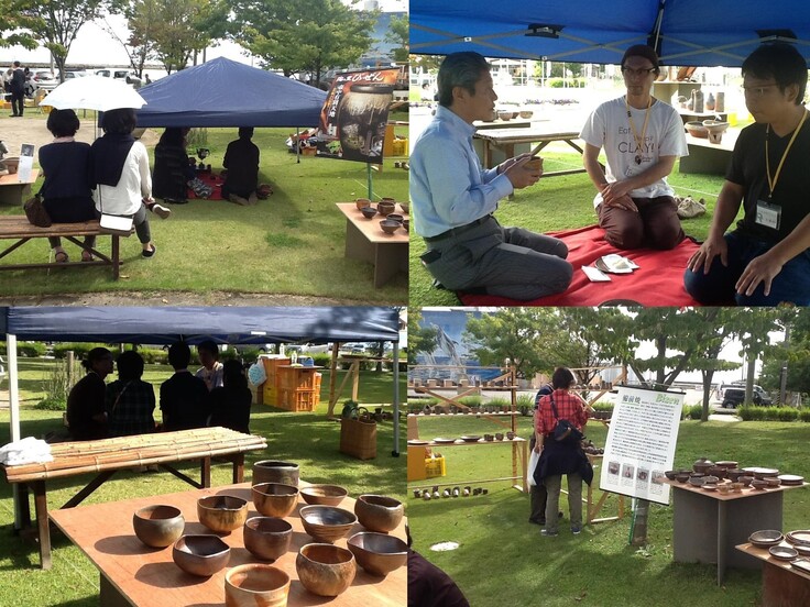 「珠洲焼まつり」会場にて、備前焼の展示とキャラバン茶。愛好家の方々はもちろんのこと、泉谷満寿裕 珠洲市長をはじめとする行政関係者の皆さま、地元で活動されている珠洲焼作家の皆さまなどなど…いろいろな方といろいろなお話をさせていただくことができ、充実の二日間となりました。