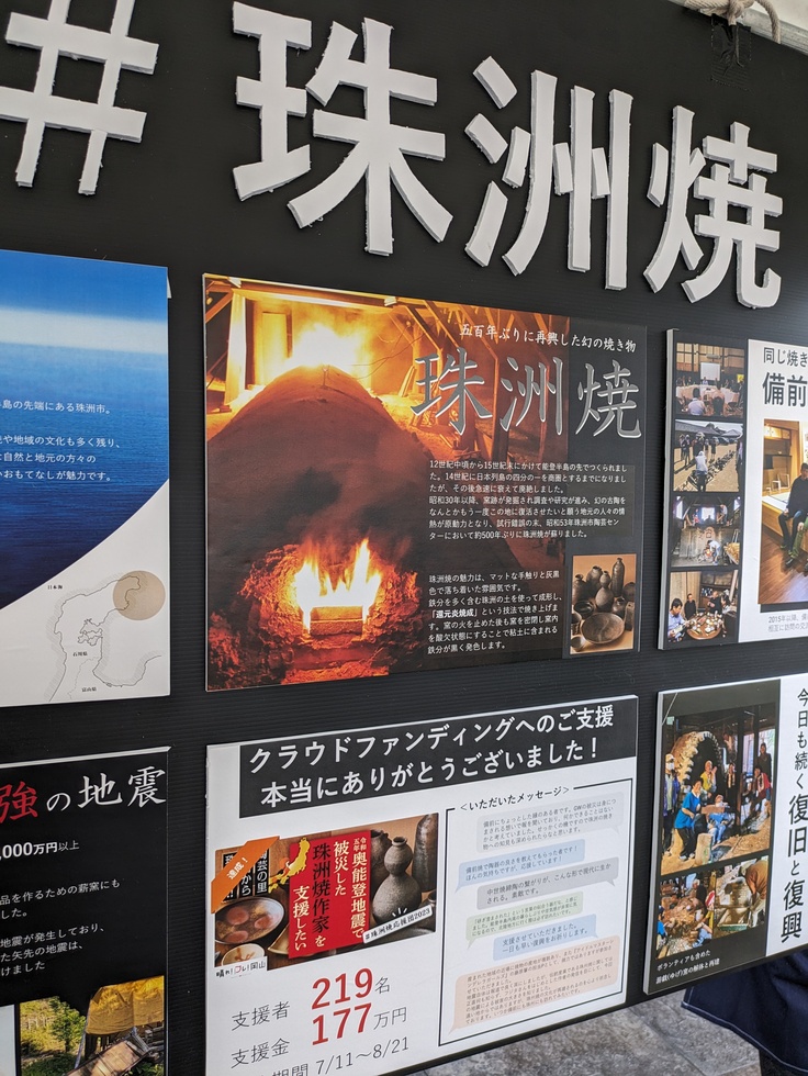 ブースでは、珠洲焼や、珠洲市特産のお菓子「いも菓子」の販売、珠洲市・珠洲焼のパンフレットのお渡し、震災被害への募金を中心に活動させていただきました🙇♂