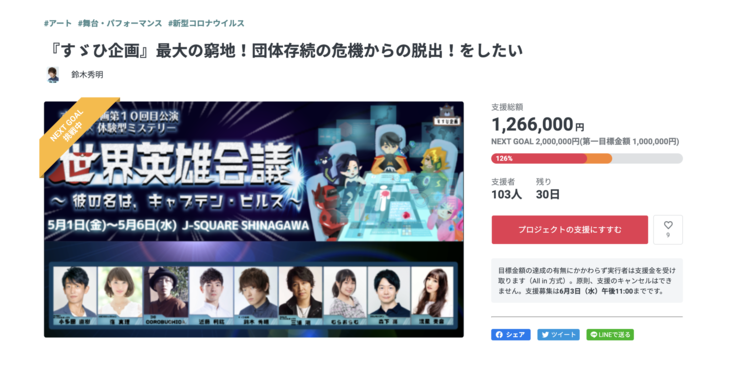 さて「『すゞひ企画』最大の窮地!団体存続の危機からの脱出をしたい!」プロジェクトですが、終了まで後30日というところで、大変ありがたいことに103名もの皆様にご支援をいただきました!