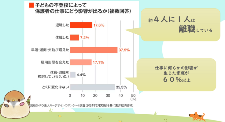 不登校になった児童生徒が日中どこで過ごしているかというアンケートによると、約60%が自宅で過ごしているという結果が出ています