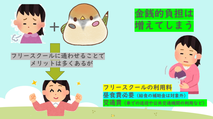 しかし、フリースクールに通わせることで金銭的負担は増えてしまいます