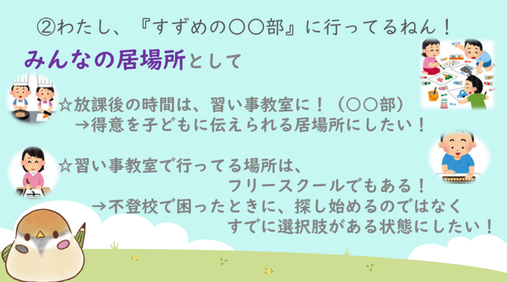 - 島川 梨沙(フリースクール すずめの學校)