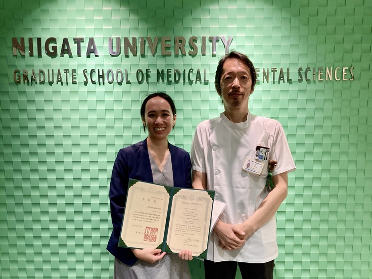 新潟大学は,文部科学省の「大学の世界展開力強化事業」に採択され,「環東アジア地域教育研究ネットワーク(EARNet(アーネット)機構)」を設置し,留学生を積極的に受け入れています.この度,2018年10月より当分野に所属していたSirima Kulvanich先生(タイ,タマサート大学)が博士課程を修了いたしました.摂食嚥下障害の臨床や研究に携わる歯科医師や,咀嚼を含む口腔機能の基礎研究に携わる研究者は,日本以外の海外に目を向けても殆どいないのが現状です.熱心に研究や臨床に取り組まれていた彼女がそれをリードする存在となることが期待されます.