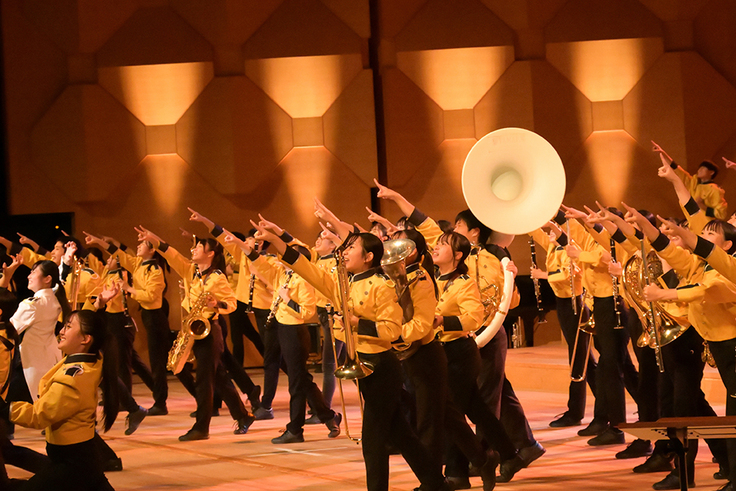 規律や練習の厳しさの向こう側に、学生が今できる最高のエンターテインメントを披露する場を提供し、そこを目指して頑張るモチベーションの要因となることを期待して、演奏の上手さよりもキーワードの「楽しさ・格好良さ」を共有する仲間との連帯感を重視したステージとなることを目指しています。
