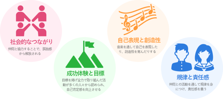 そのようなカッコイイ吹奏楽部の活動によって子ども達が得るものは、次の4点に大別されると考えています。