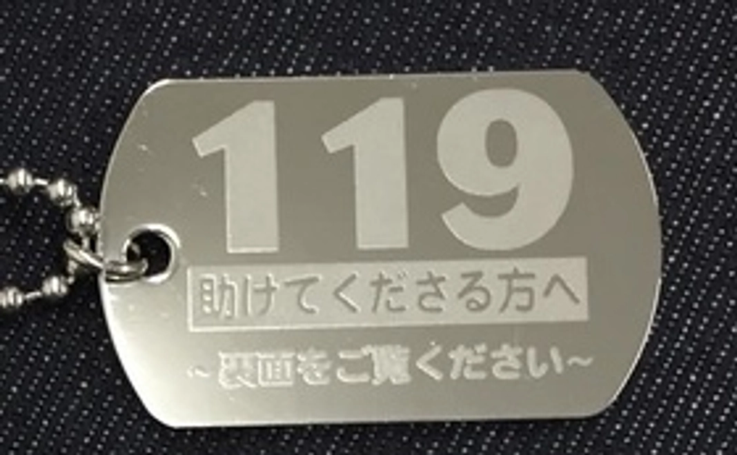 具体的には、全国の認知症の高齢者や障害者が身に着ける緊急連絡先が書かれたタグを広島にある刻印工房で制作し、対象者の方に配布を行います。