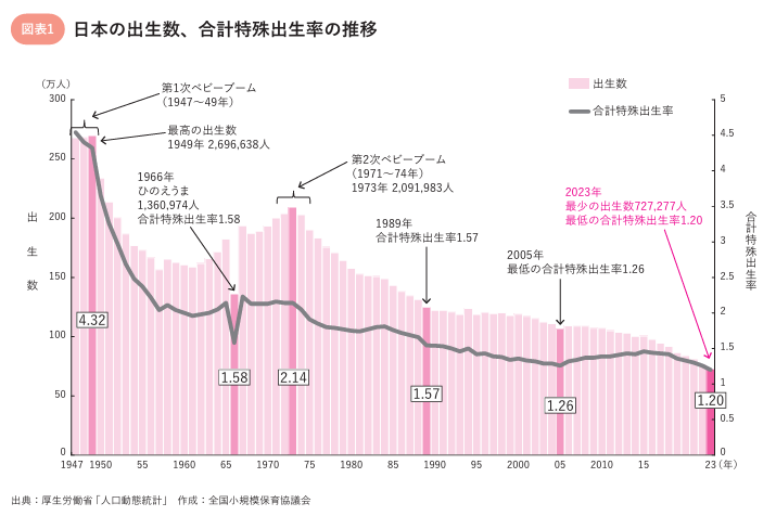 現代日本では、さまざまな要因から未婚化晩婚化が進み、婚姻件数においては、2021年に50 万1138組と過去最低となりました。 さらには、核家族化が進行し、共働き世帯が増加しています。2023年には出生数が過去最低を記録し、子育て世帯への支援はますます重要視されています。