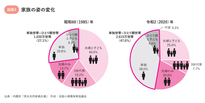 2025年版では、子ども・子育て支援新制度のスタートから10年の節目に当たり、当時からの社会背景を振り返り、子ども・子育て家庭の状況や小規模保育という形態が制度導入後、どのように拡大してきたかを検証します。