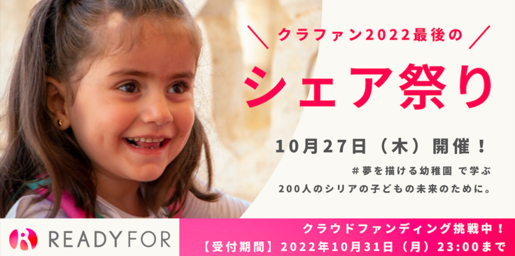 【プロフィール・イベント詳細】https://readyfor.jp/projects/syria2022/announcements/232854