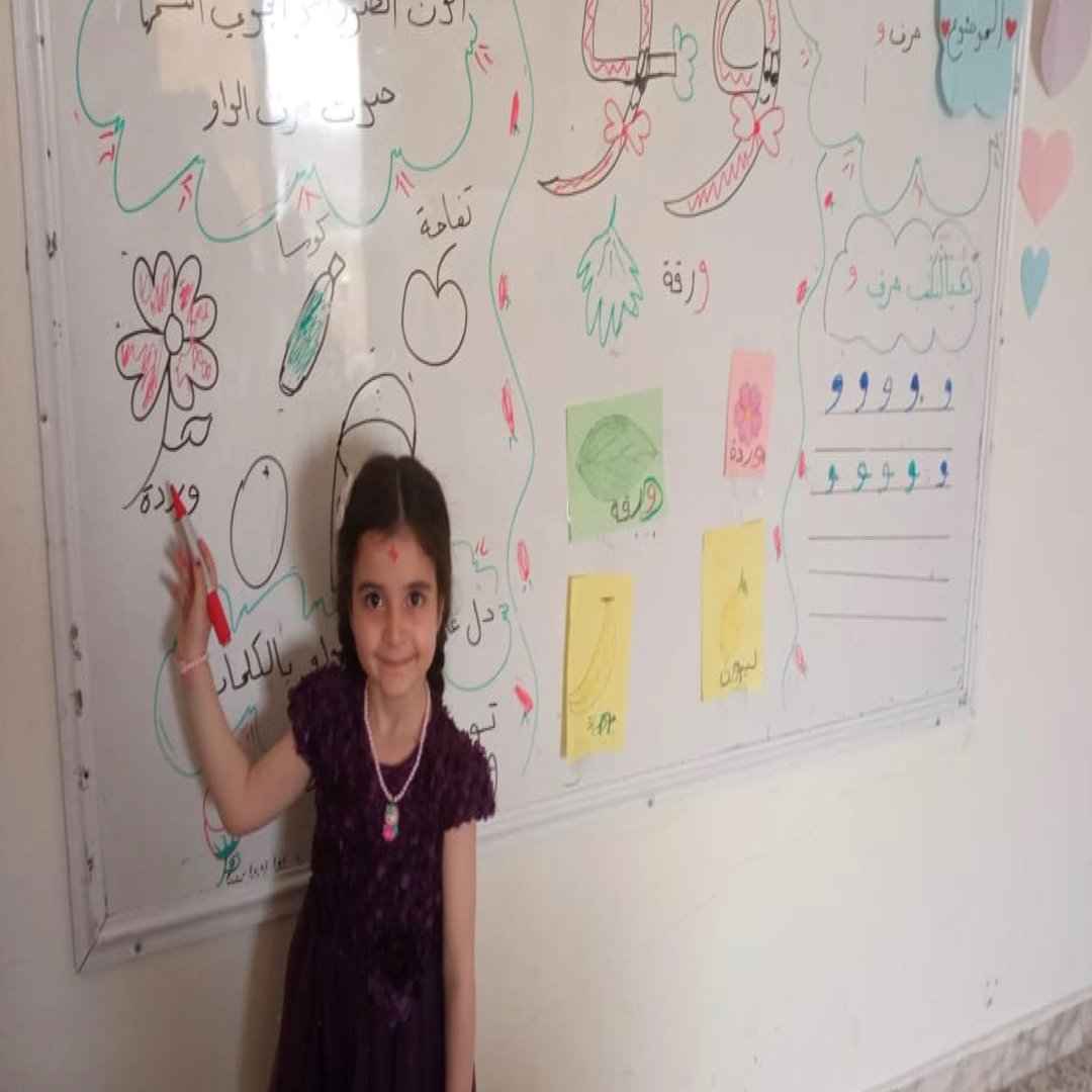 幼稚園があるのは国内避難民が集まる地域。そのため、子ども達は地域の方言・アクセントが異なり、時に意思疎通ができないほど。フォーマルなアラビア語を使うようにするほか、写真やストーリーを使って理解しやすいための工夫してします。