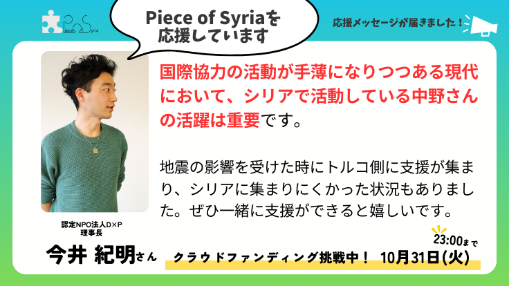 【応援メッセージ】今井紀明さん( 認定NPO法人D×P 理事長)