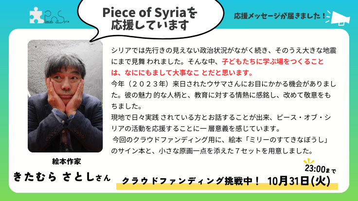 作者のきたむらさとしさんが、Piece of Syriaを応援するために、描いてくださいました。