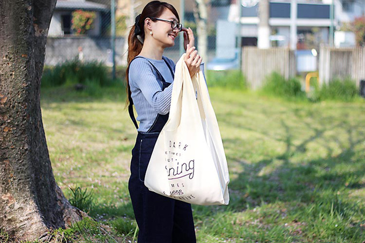 たっぷり入る大きさなので、ちょっとしたお買い物にはもちろん、ジムバッグにもおすすめ。100%インド綿の薄手な生地は、軽くて使いやすいです。荷物の出し入れも簡単なので、小さいお子さんのいる方にも◎(JAMMINさんHPより)