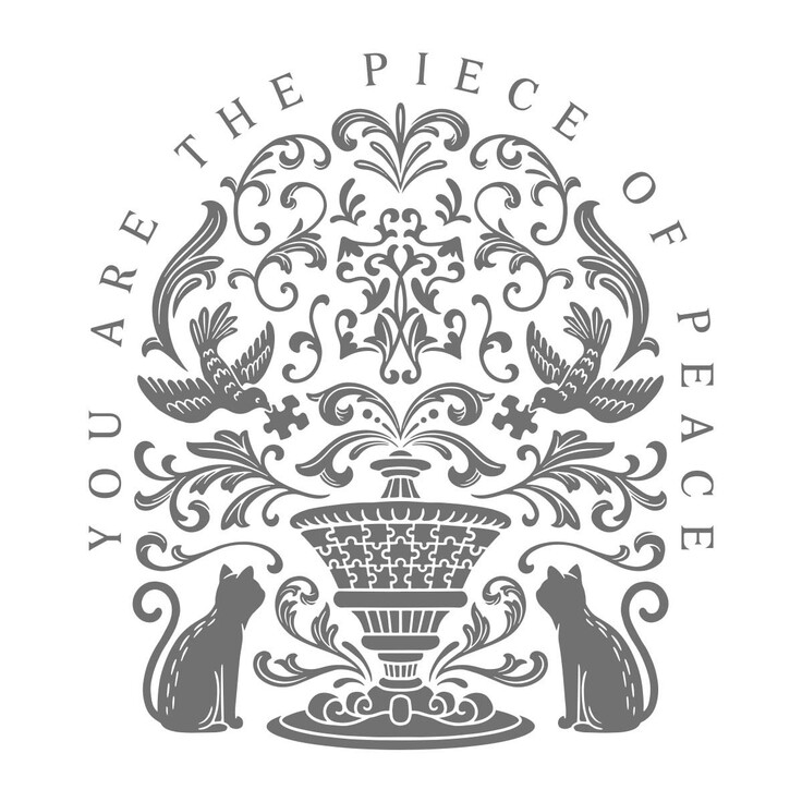 デザインを囲むように、「パズルのピースのように力を合わせて、平和を実現していく」という私たちの団体の想いを表す言葉として、"You are the piece of peace" 「あなたこそ、平和の1ピース(あなたの想いや行動で、世界は平和になる)」というメッセージを添えています。