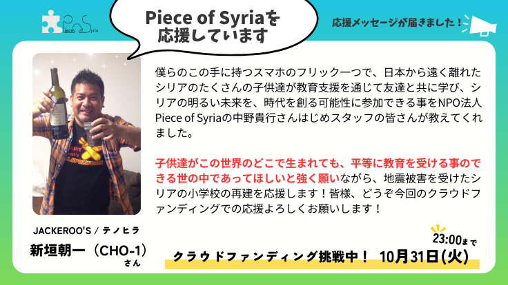 【応援メッセージ】JACKEROO'S / テノヒラ 新垣朝一(CHO-1)さん