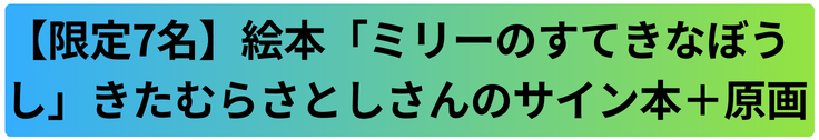 | 【限定7名】絵本「ミリーのすてきなぼうし」きたむらさとしさんのサイン本+ミニ原画 | 7 | ¥50,000 |