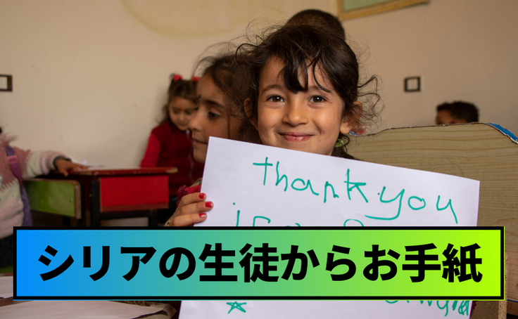 メッセージをお預かりして、シリアの子どもにお渡しし、あなたのお名前入りのお写真を届けさせていただきます。