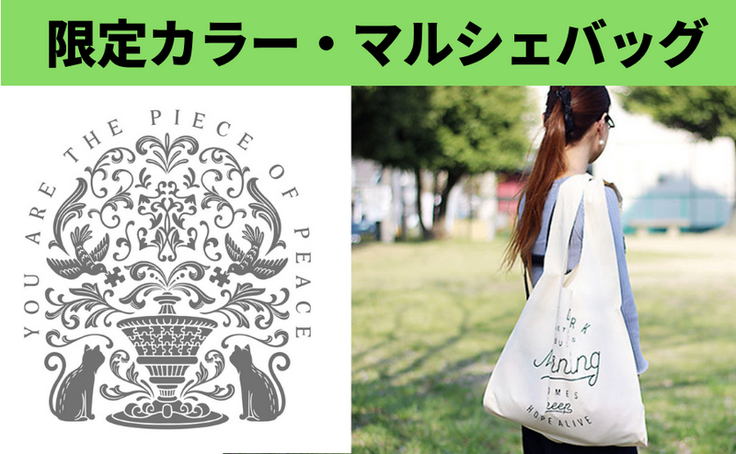 小さくたためて、大きく入る、とっても使い勝手の良いマルシェバッグで、グッズとしてもおすすめです。