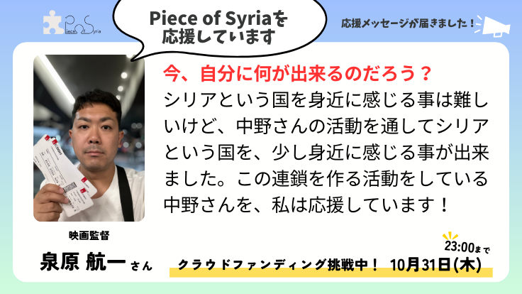 <応援メッセージ>泉原 航一さん(映画監督)