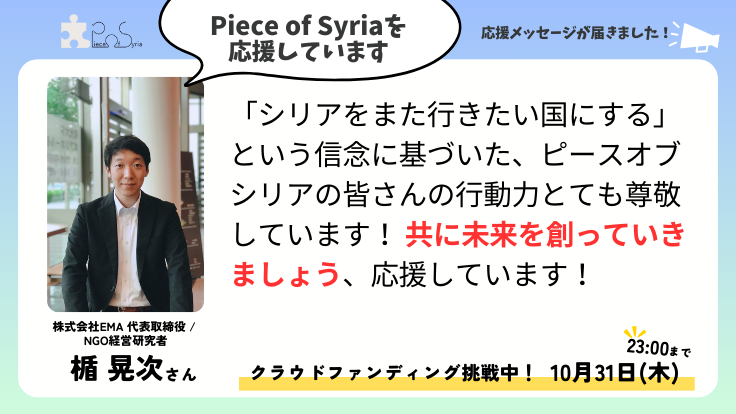<応援メッセージ>楯 晃次さん(株式会社EMA 代表取締役 / NGO経営研究者)