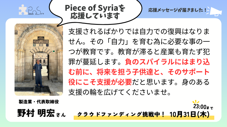 野村 明宏さんから応援のメッセージが届きました!!📣