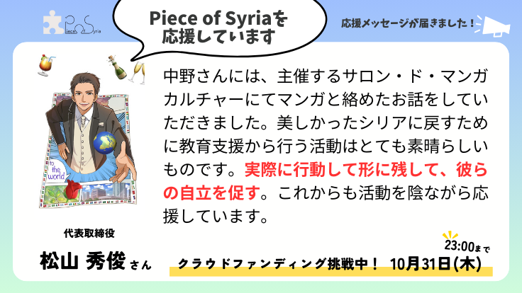 <応援メッセージ>松山 秀俊さん(代表取締役)